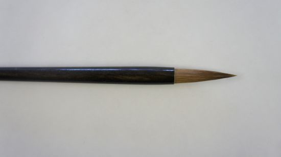 Длина ручки 24 см, длина кисти 4 см, диаметр у основания кисти 1 см. Состав: шерсть хорька. Ручка выполнена из дерева. Ручная работа. Гибкая кисть, с помощью которой удобно делать штрихи в пейзажной живописи. Подходит для рисования шерсти, так как она собирается "в лопаточку", как плоская кисть. Также используется для каллиграфических работ в стиле кайшу, лишу и синшу.