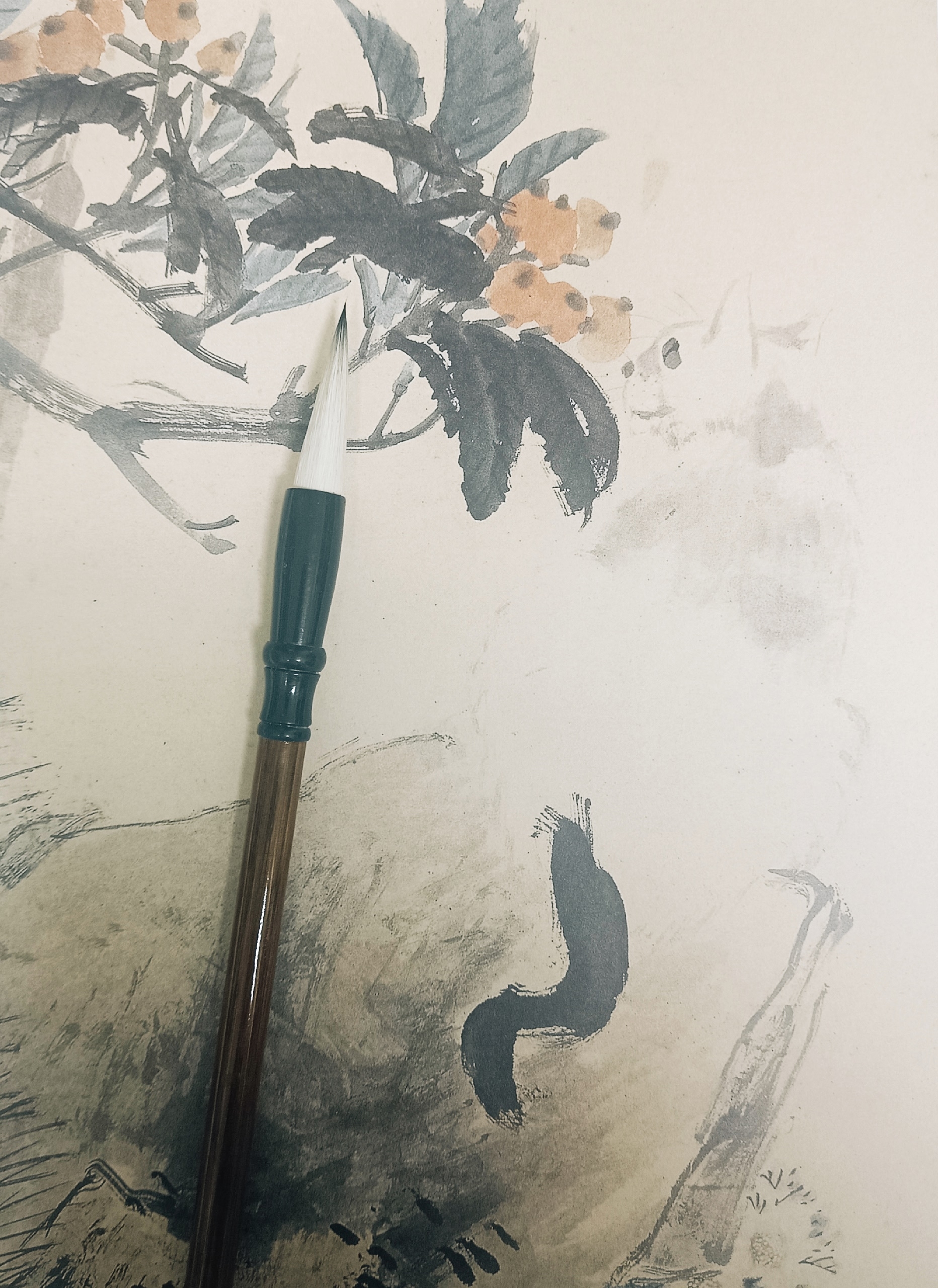 Мягкая козья шерсть отлично набирает и удерживает воду, краски и тушь, а упругая шерсть кролика собирается в тонкий кончик и позволяет проводить изящные линии. Используется для картин в стиле сеи в любых жанрах, а также для каллиграфических работ в стиле кайшу.