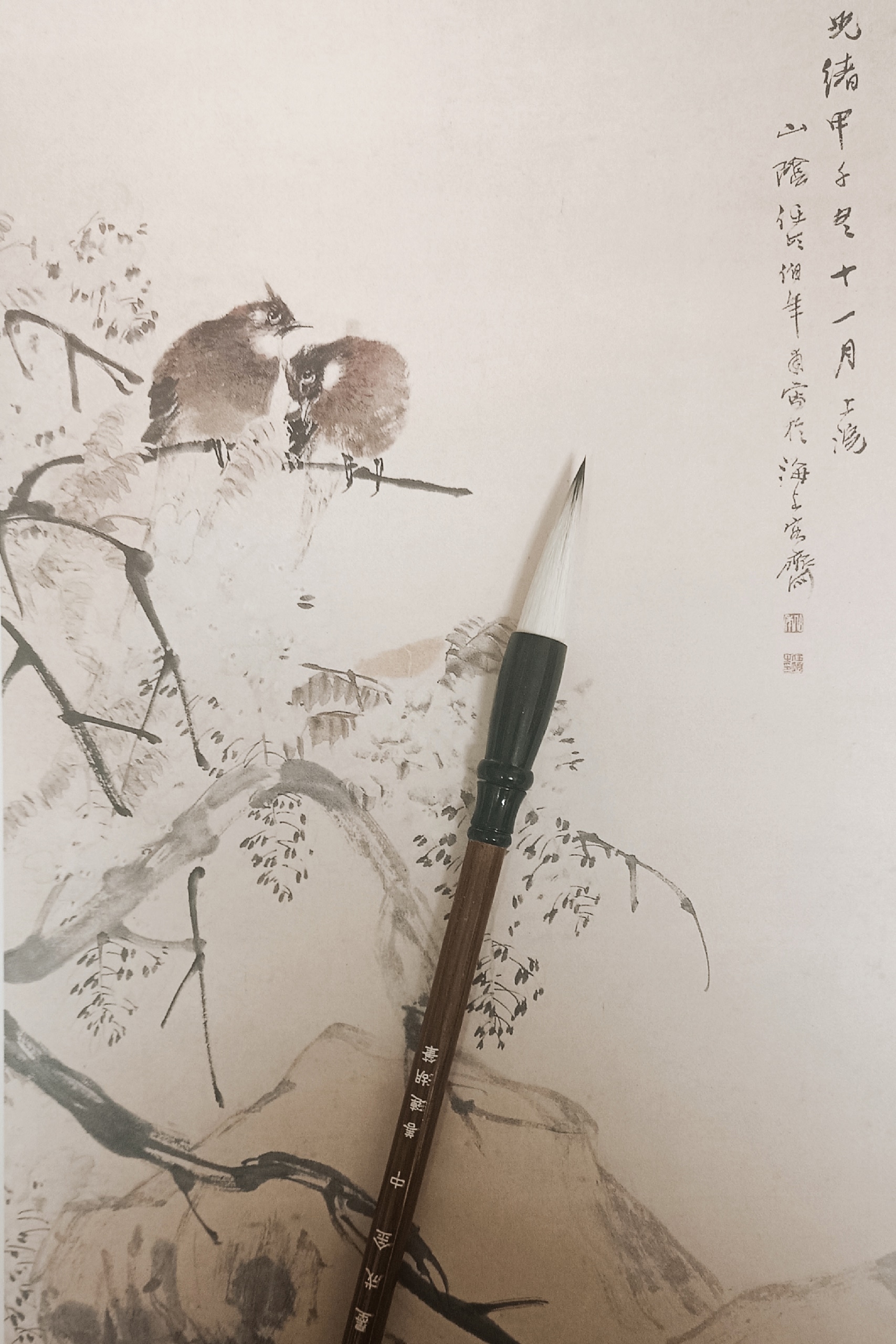 Мягкая козья шерсть отлично набирает и удерживает воду, краски и тушь, а упругая шерсть кролика собирается в тонкий кончик и позволяет проводить изящные линии. Используется для картин в стиле сеи в любых жанрах, а также для каллиграфических работ в стиле кайшу.