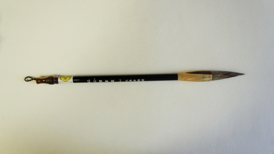 Длина ручки 29,5 см, длина кисти 5 см, диаметр у основания кисти 1,2 см. Кисть вручную изготовлена с использованием шерсти барсука, которая отличается особой прочностью и упругостью. Такая кисть подходит для нанесения мощных энергичных штрихов. С помощью тонкого кончика, в который собирается кисть, можно нарисовать мелкие детали или иероглифы. Кроме того, шероховатая поверхность шерсти барсука отлично впитывает и удерживает тушь и краску, поэтому ей можно создавать различные эффекты. Таким образом, кисть "Горы и воды" отлично подходит для создания пейзажей. Также её можно рекомендовать для каллиграфических работ.