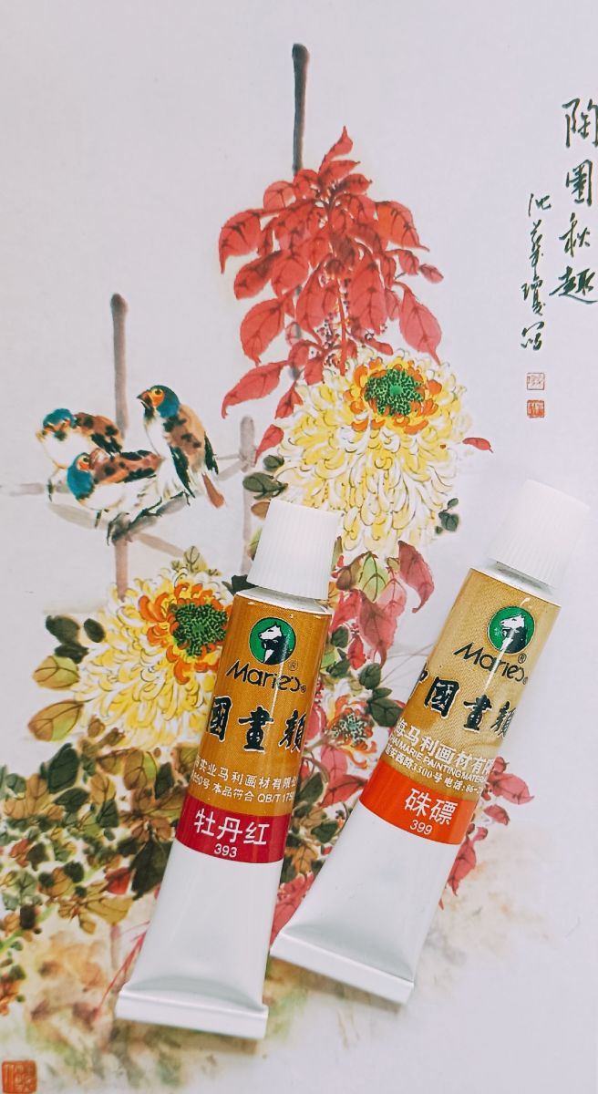 Краски "Мэрис" пользуются большой популярностью, особенно у начинающих художников. Благодаря своей яркости и стойкости они прекрасно подходят для картин в стиле сеи и суми-э. Краски, которые используются для восточной живописи, принято называть минеральными, хотя на самом деле они изготавливаются не только из минералов, но и их растительных и органических компонентов. Например, оранжевая и розовая киноварь делаются из сернистой ртути, охра ― из красного железняка, тогда как гарциниевый жёлтый ― из смолы деревьев, а кармин получают из самок нескольких видов насекомых (кошенили).