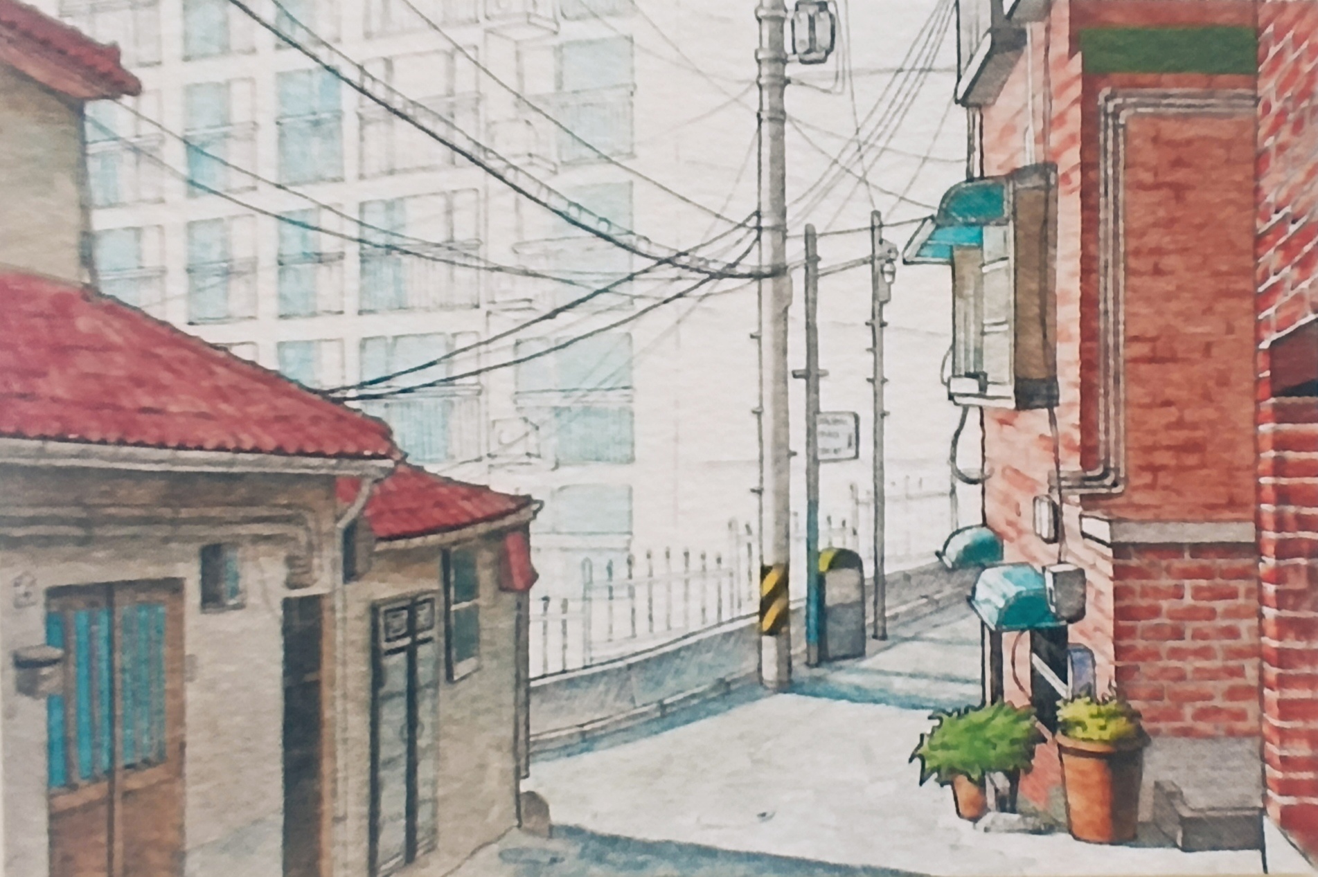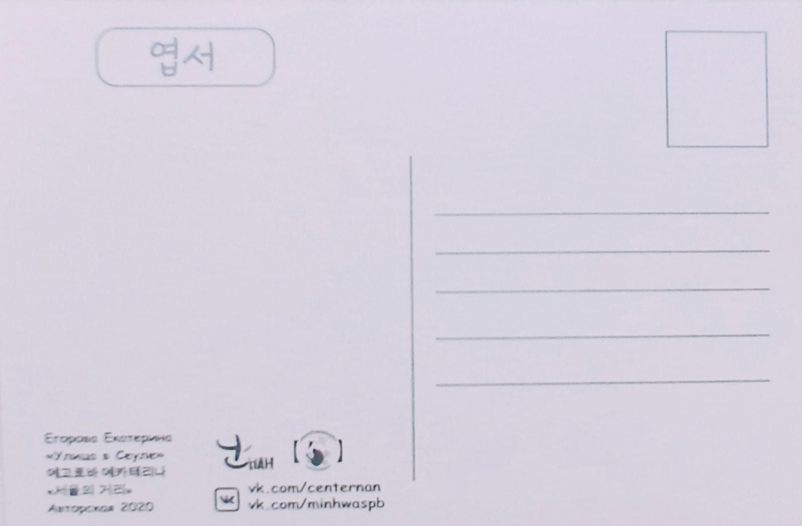 Открытка с авторским дизайном Екатерины Егоровой "Улица в Сеуле". Высококачественная хлопковая бумага. Размер открытки 15*10 см.