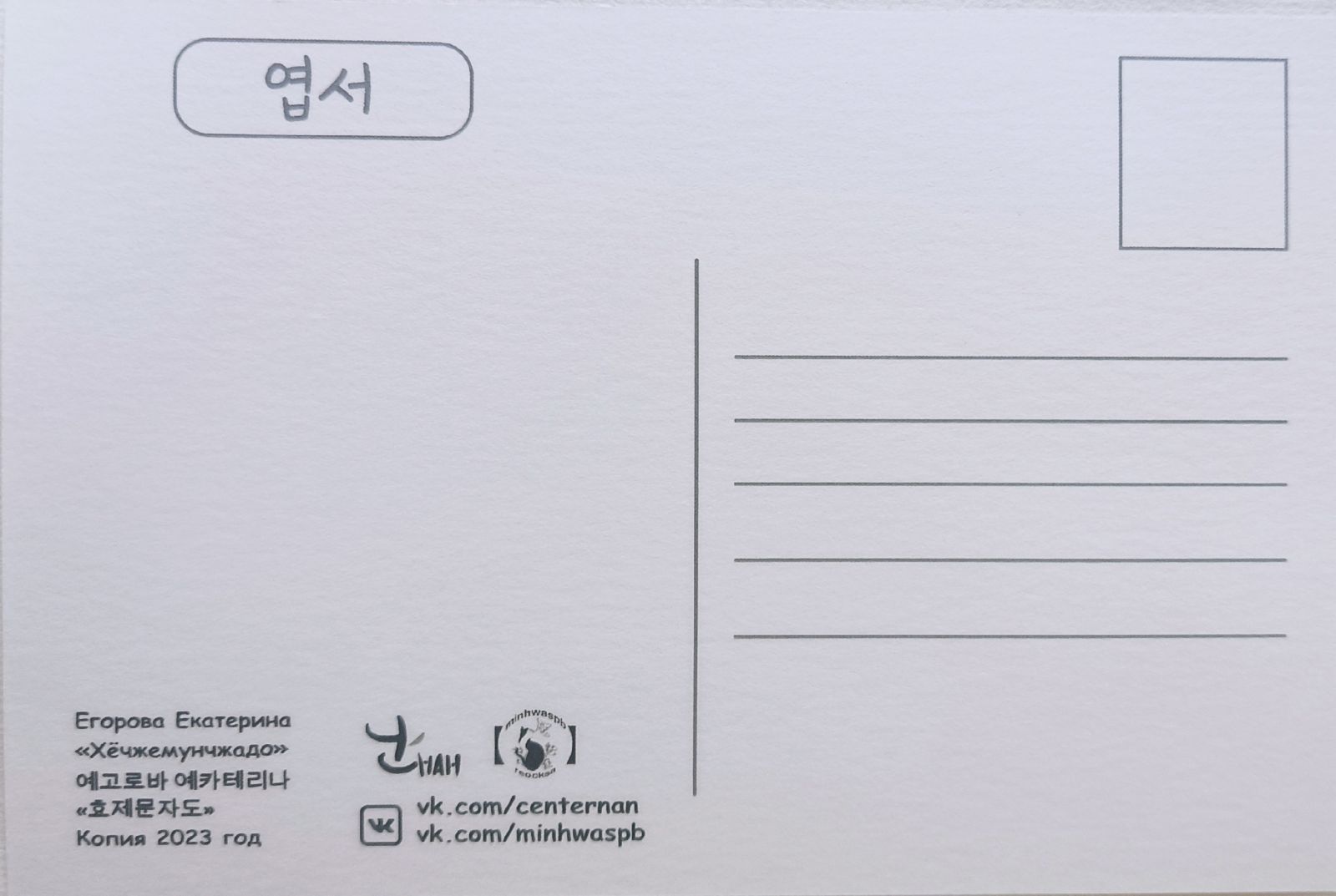 Открытка с авторским дизайном Екатерины Егоровой "Хёчжемунчжадо". Высококачественная хлопковая бумага. Размер открытки 15*10 см.